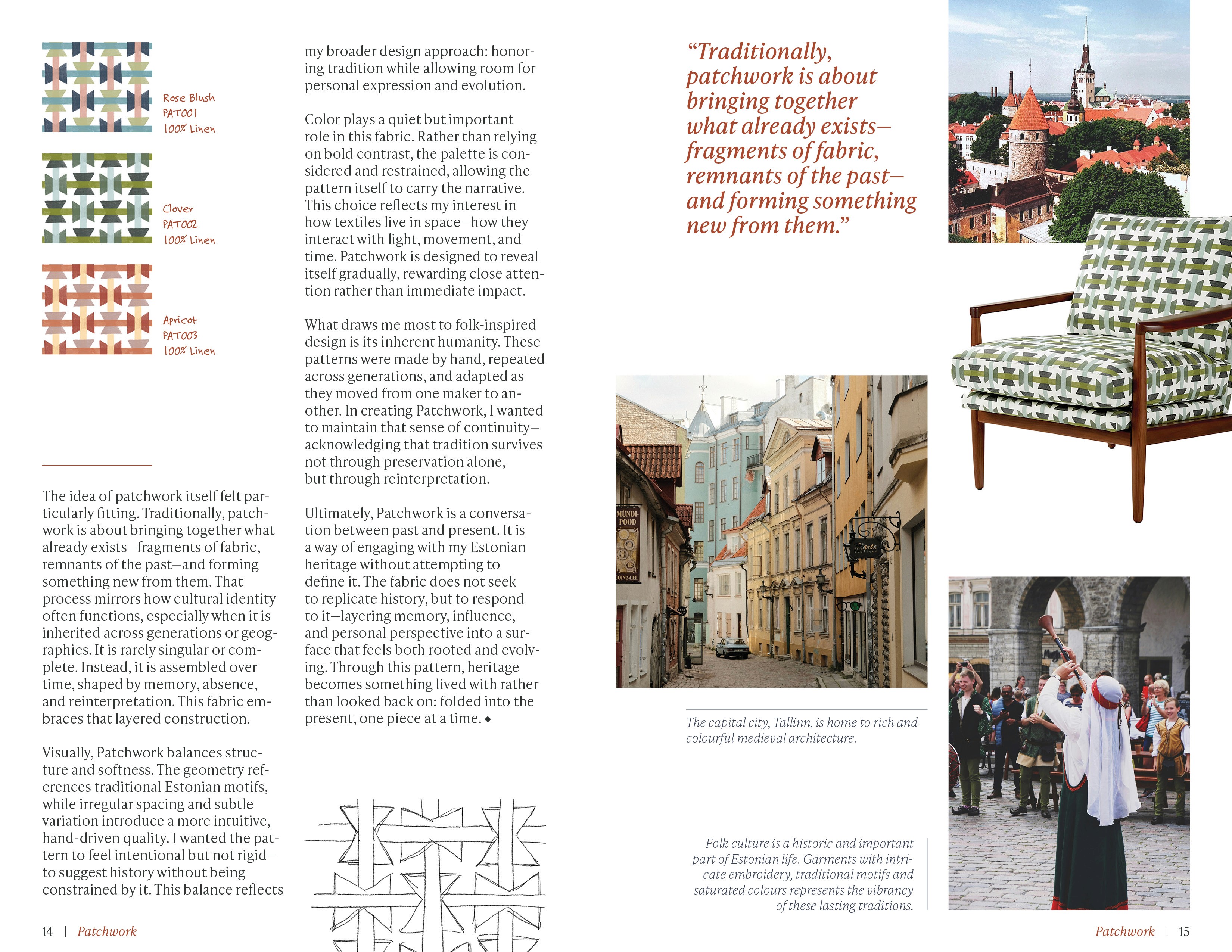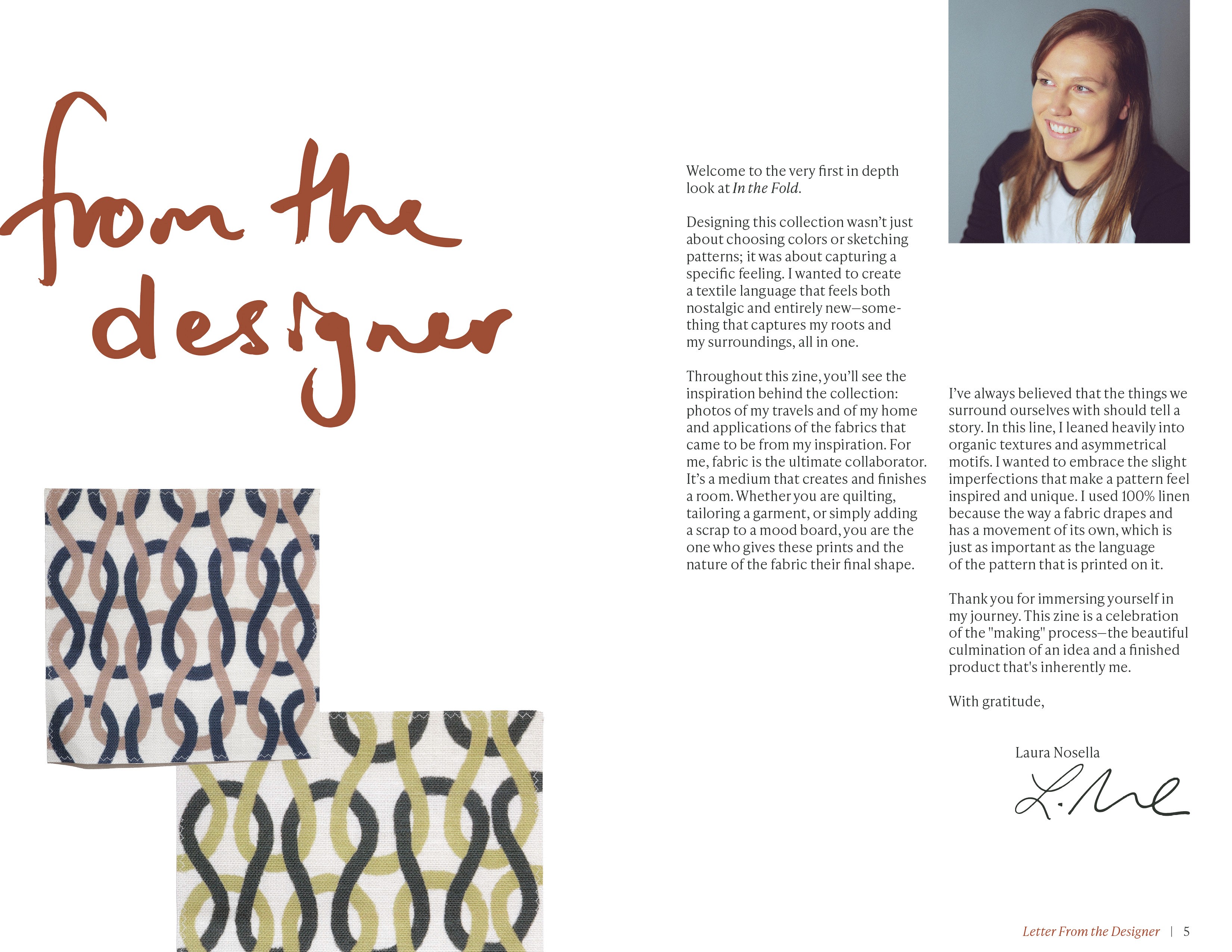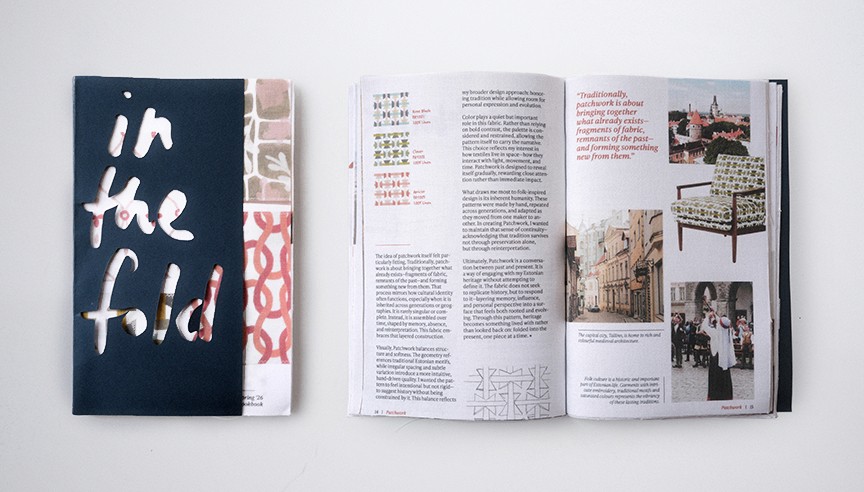 In The Fold lookbook, featuring all four patterns in all colourways as well as photography and mockups to accompany the storytelling aspect of the zine