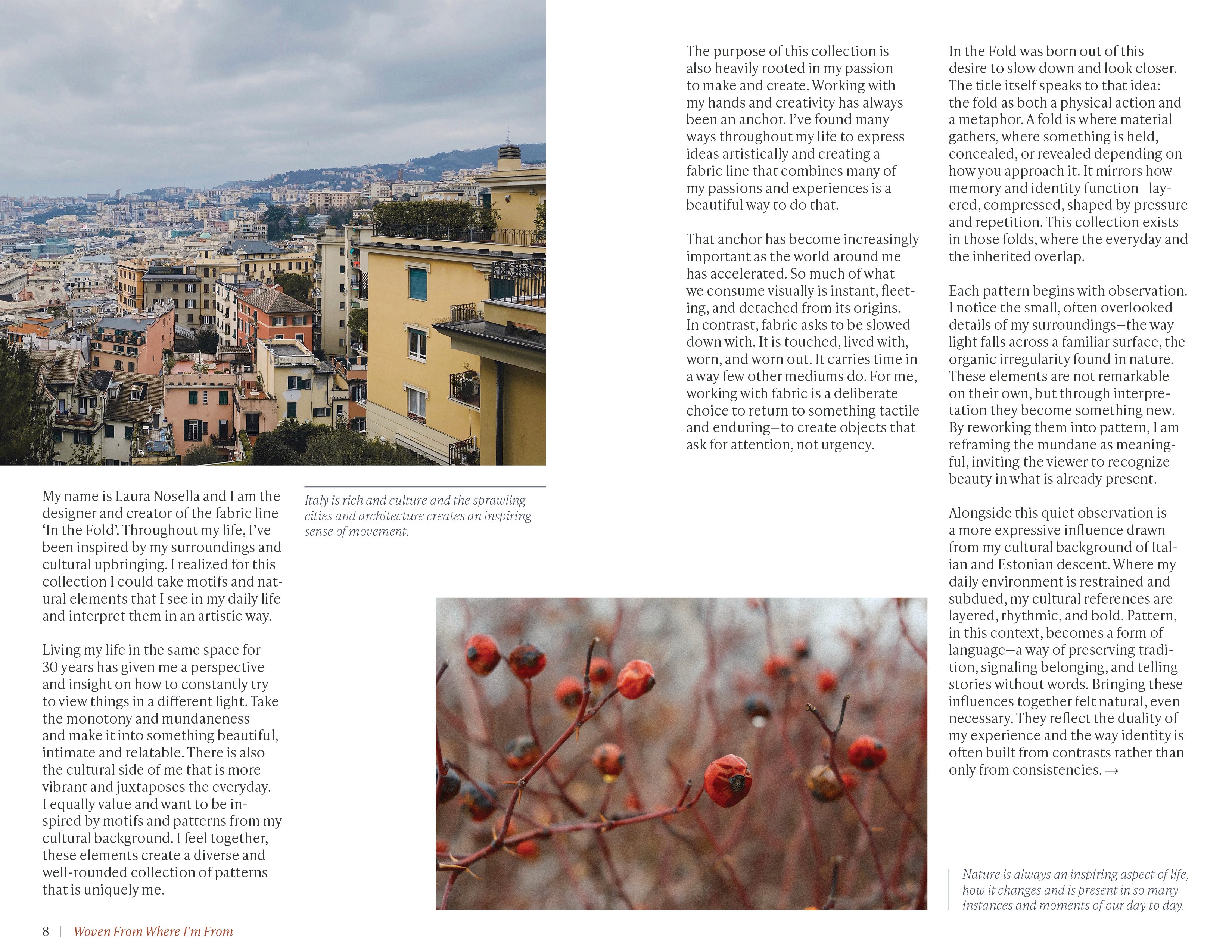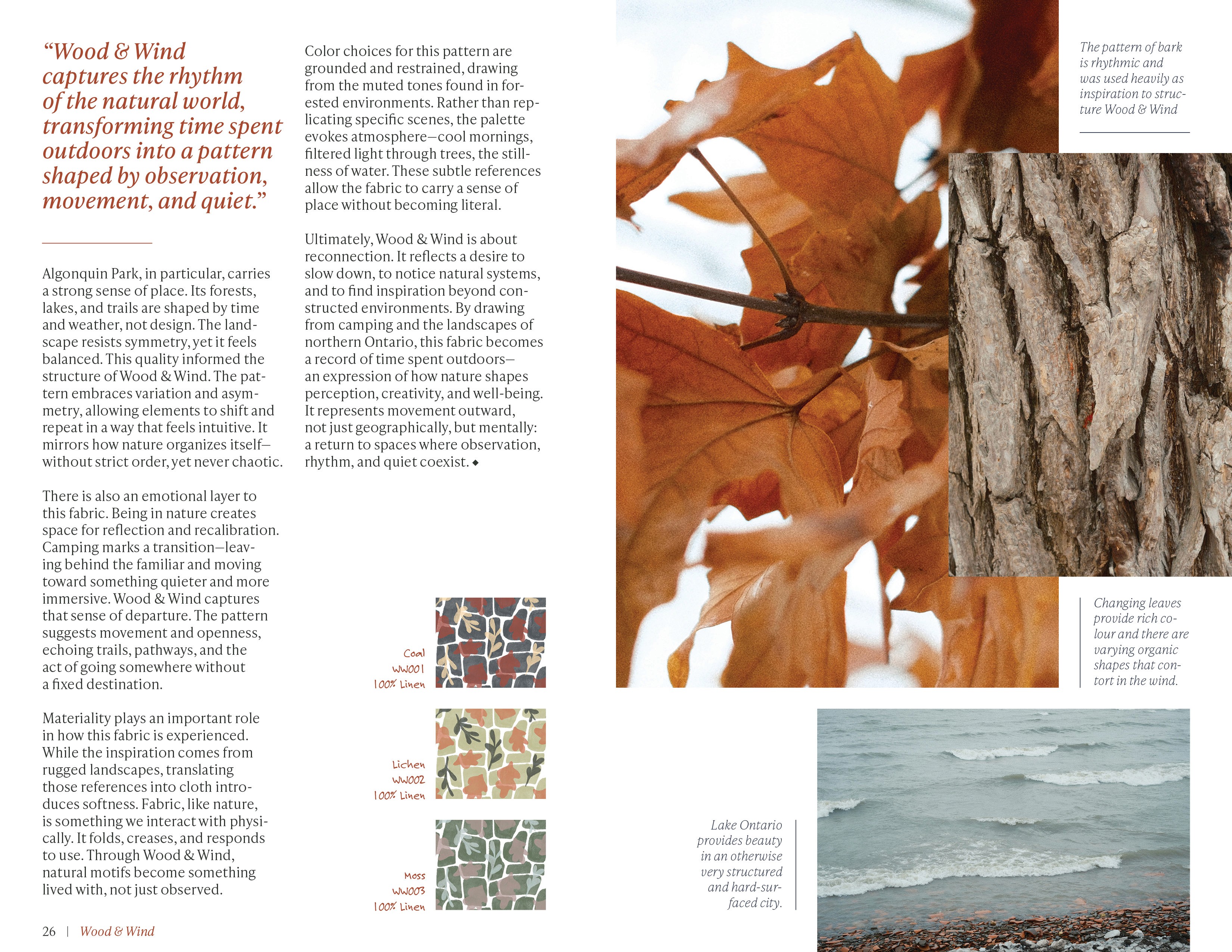 The physical copy of the lookbook was printed on cotton fabric, to draw a connection between the content and the fabric itself and to highlight the tactile aspect of the project.