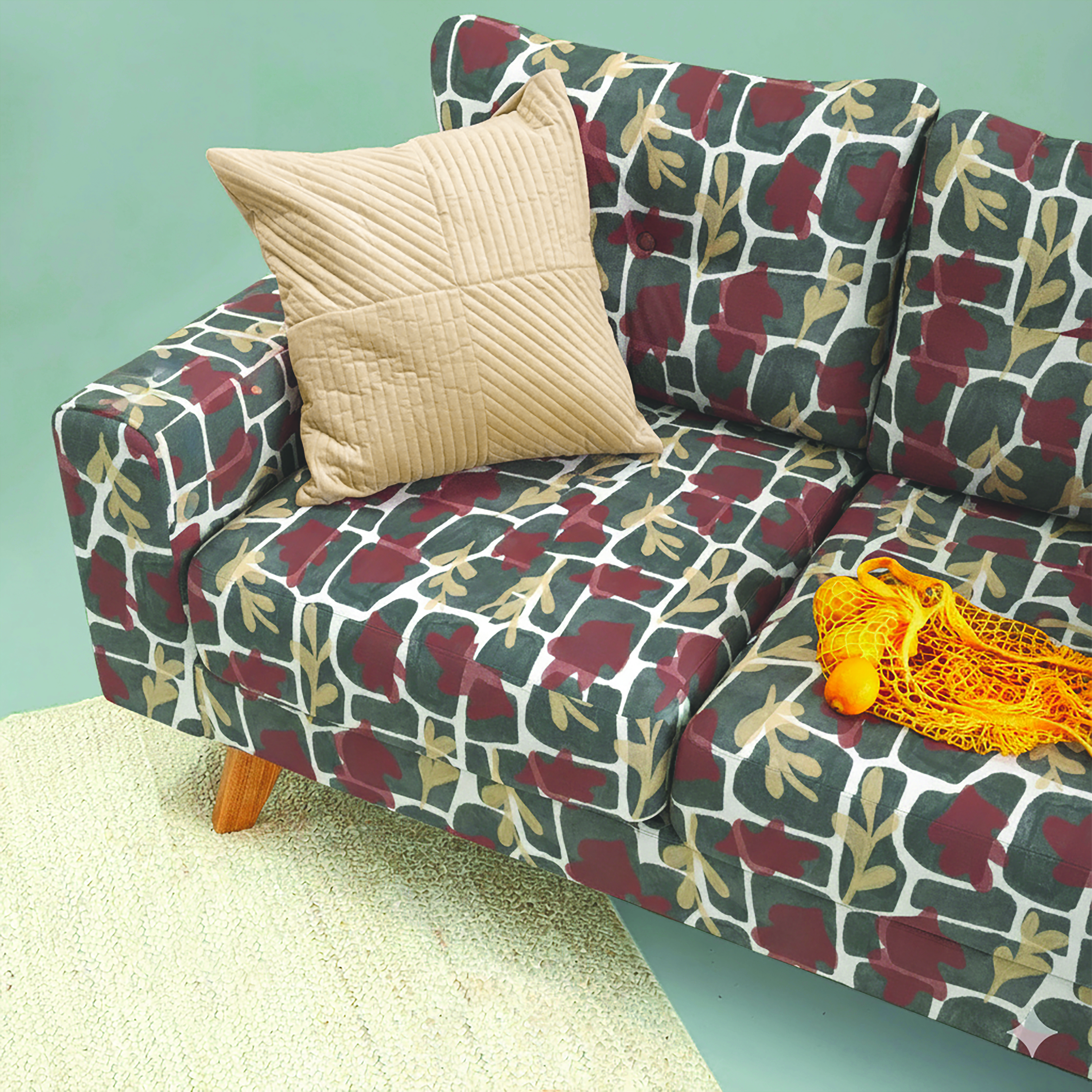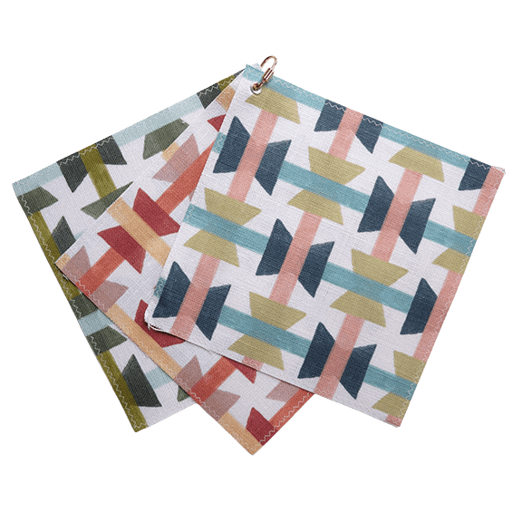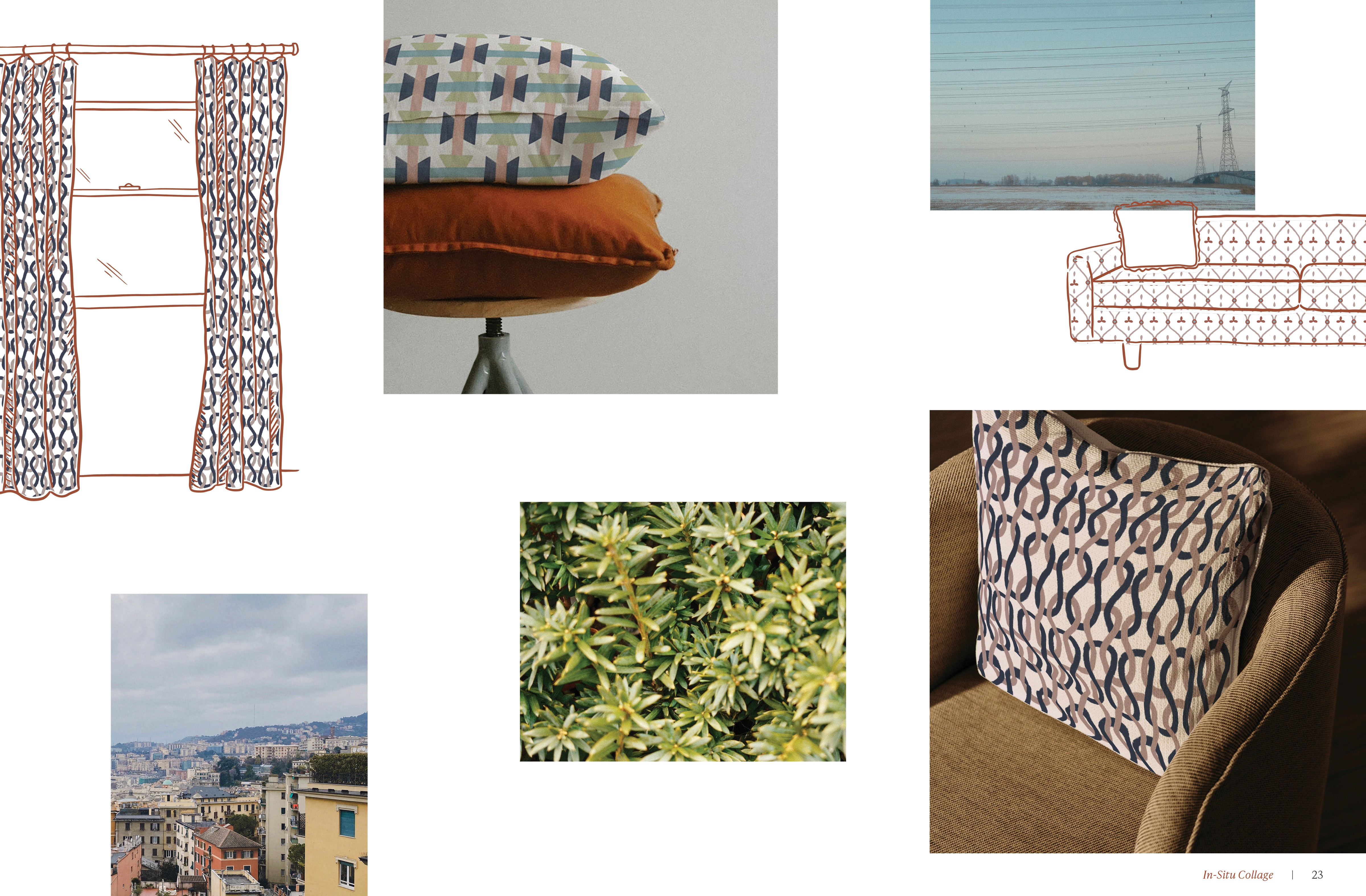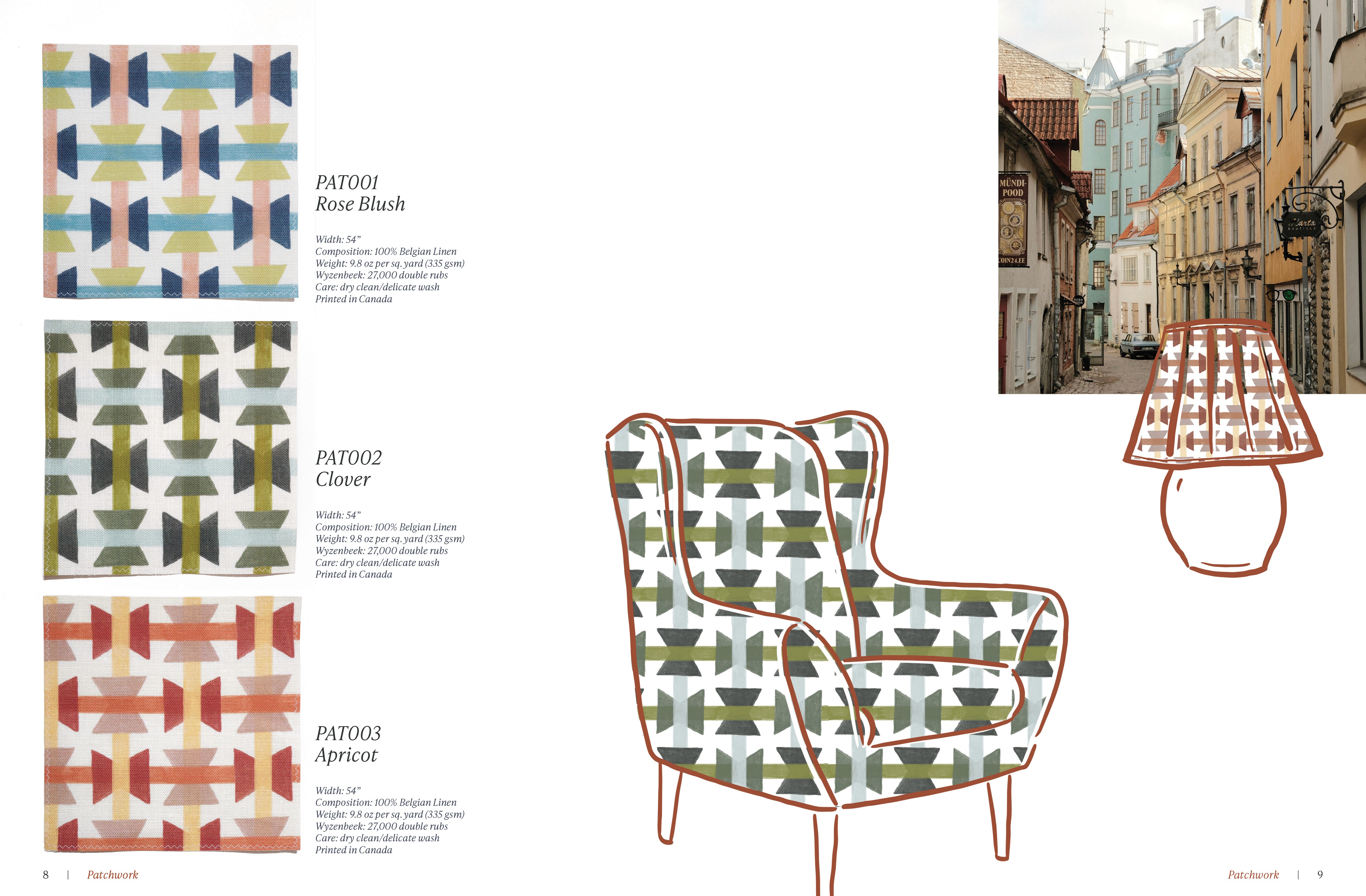 In situ mockups featuring fabric patterns imposed onto furniture and other pieces of home decor
