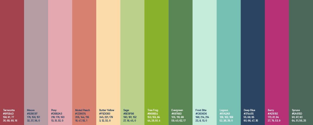 The colour palette includes a lot of different tones and levels of saturation, however they're all used in a cohesive way that feels grounded and earthy.